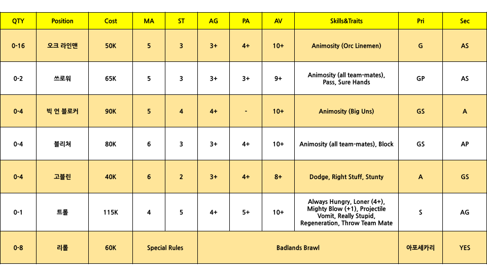 블러드 보울 TV 1000 가이드: Orcs TeamsOther/Blood Bowl: TV 1000 2020. 12. 12. 00:00
